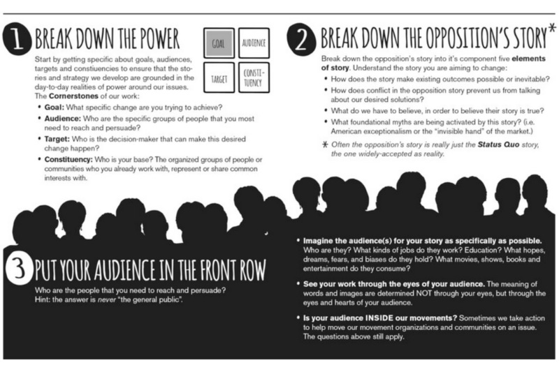 The Center for Story-Based Strategy provides guidance, tools, and resources for centering stories in social justice and liberation advocacy and activism. Below, I share examples of how existing fictional stories might be leveraged to communicate your message.